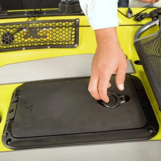 Hatch rectangular Hobie com abertura vertical.